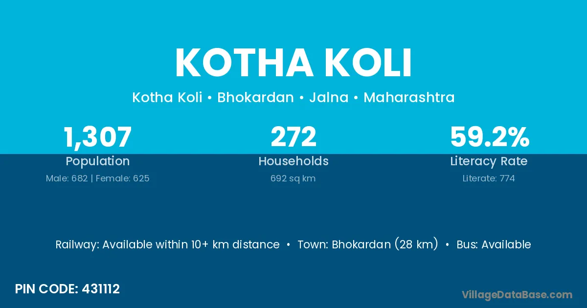 Bhokardan (28 km) is the nearest town to Kotha Koli village for major economic activities and is located approximately 28 km away.