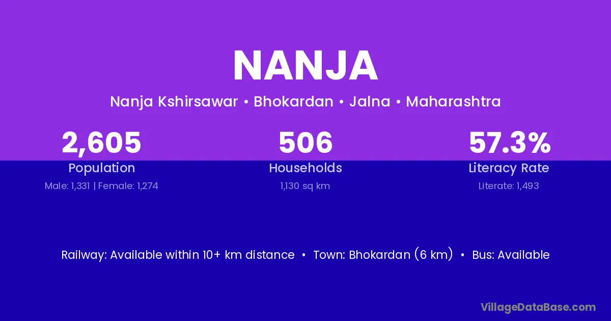 Bhokardan (6 km) is the nearest town to Nanja village for major economic activities and is located approximately 6 km away.