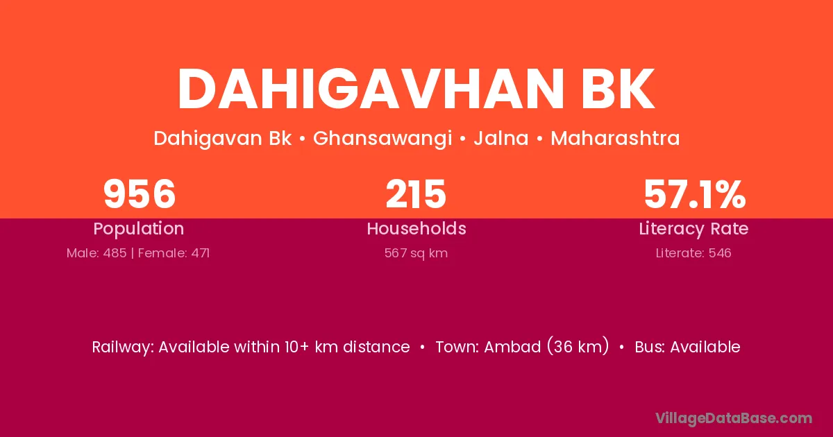 Dahigavhan Bk village has a total population of 956 people, of which 485 are males and 471 are females.