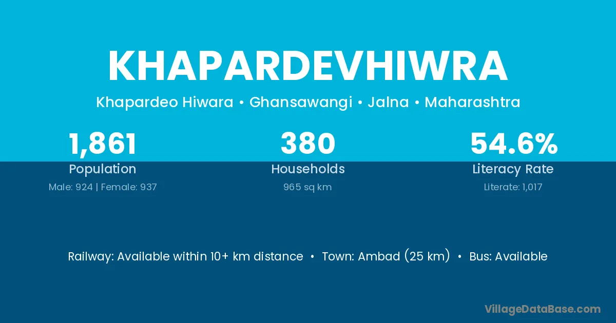 Ambad (25 km) is the nearest town to Khapardevhiwra village for major economic activities and is located approximately 25 km away.