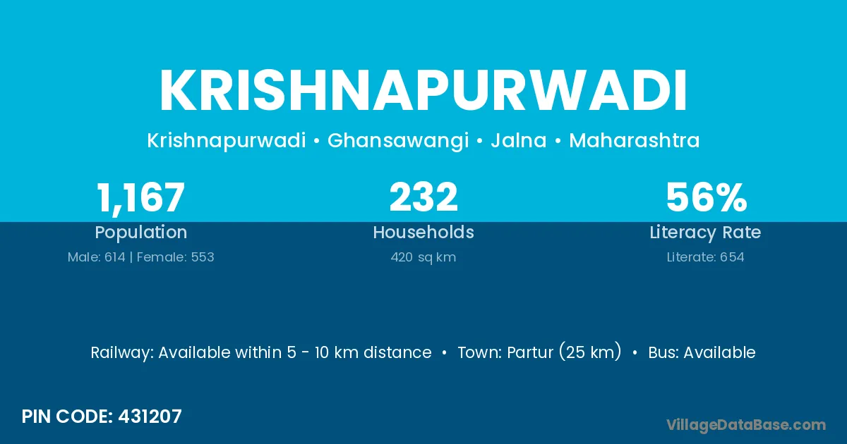 Krishnapurwadi village has a total population of 1,167 people, of which 614 are males and 553 are females.