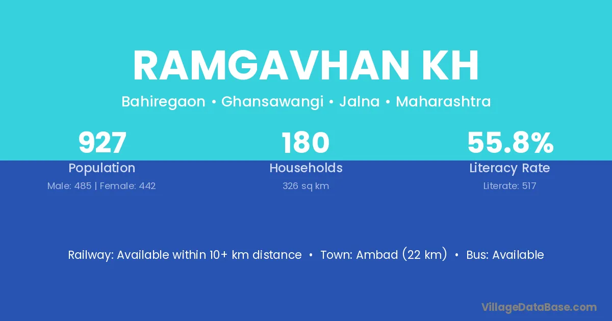 Ambad (22 km) is the nearest town to Ramgavhan Kh village for major economic activities and is located approximately 22 km away.