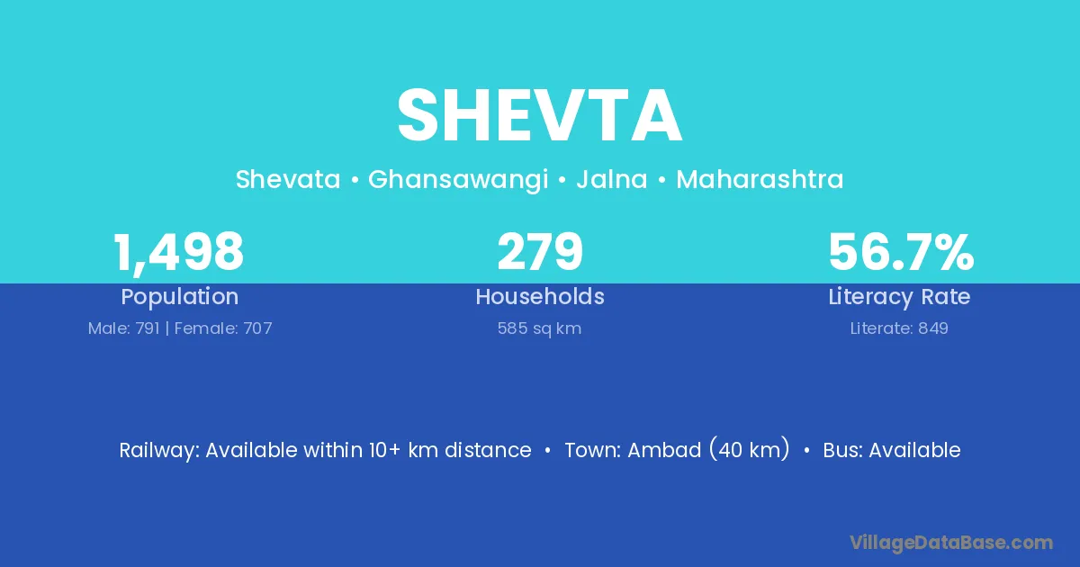 Ambad (40 km) is the nearest town to Shevta village for major economic activities and is located approximately 40 km away.