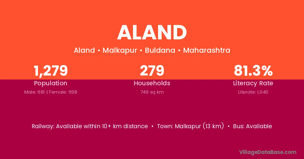 Jalna (52 km) is the nearest town to Aland village for major economic activities and is located approximately 52 km away.