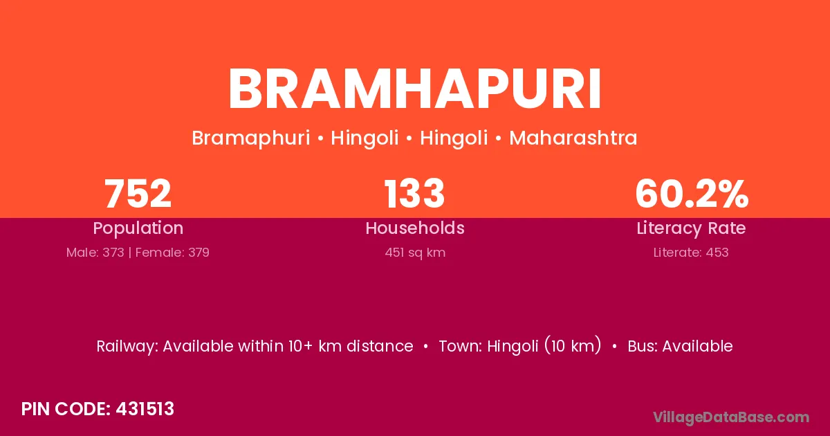 Jalna (70 km) is the nearest town to Bramhapuri village for major economic activities and is located approximately 70 km away.