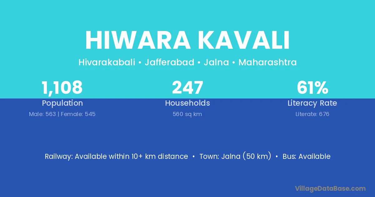 Jalna (50 km) is the nearest town to Hiwara Kavali village for major economic activities and is located approximately 50 km away.