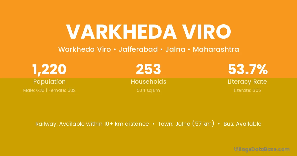 Jalna (57 km) is the nearest town to Varkheda Viro village for major economic activities and is located approximately 57 km away.