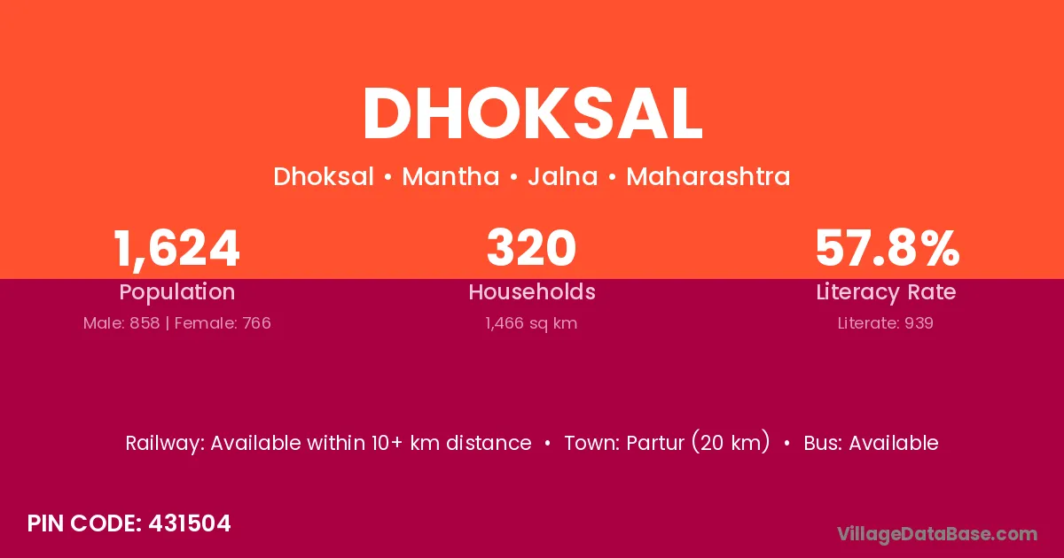 Partur (20 km) is the nearest town to Dhoksal village for major economic activities and is located approximately 20 km away.