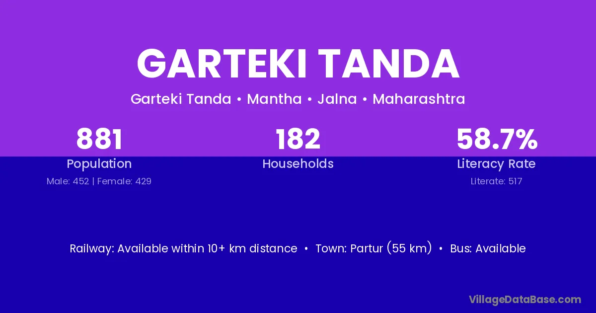 Garteki Tanda village has a total population of 881 people, of which 452 are males and 429 are females.