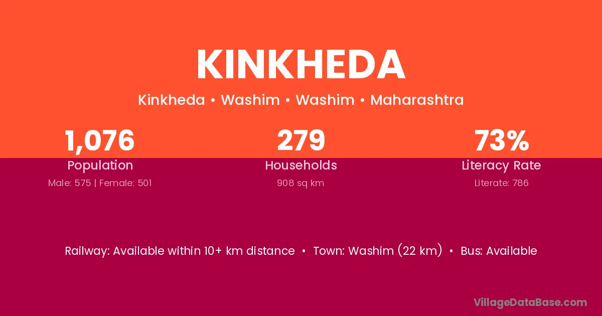 Kinkheda village has a total population of 428 people, of which 212 are males and 216 are females.