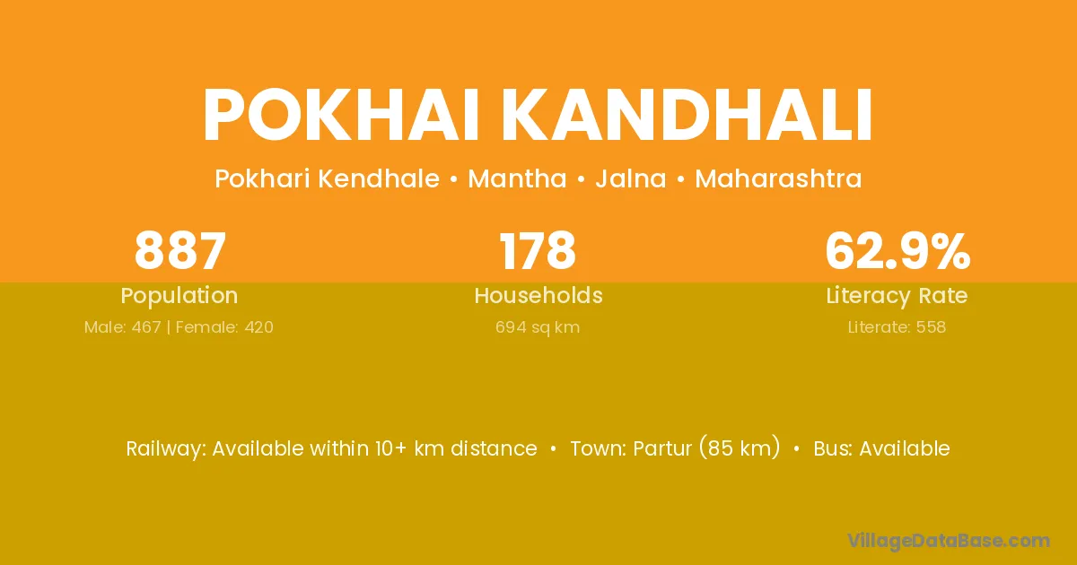 Partur (85 km) is the nearest town to Pokhai Kandhali village for major economic activities and is located approximately 85 km away.