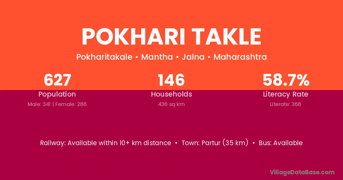 Partur (35 km) is the nearest town to Pokhari Takle village for major economic activities and is located approximately 35 km away.