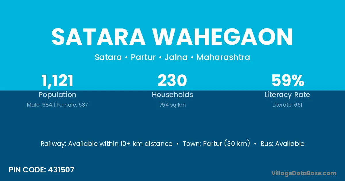 Partur (30 km) is the nearest town to Satara Wahegaon village for major economic activities and is located approximately 30 km away.