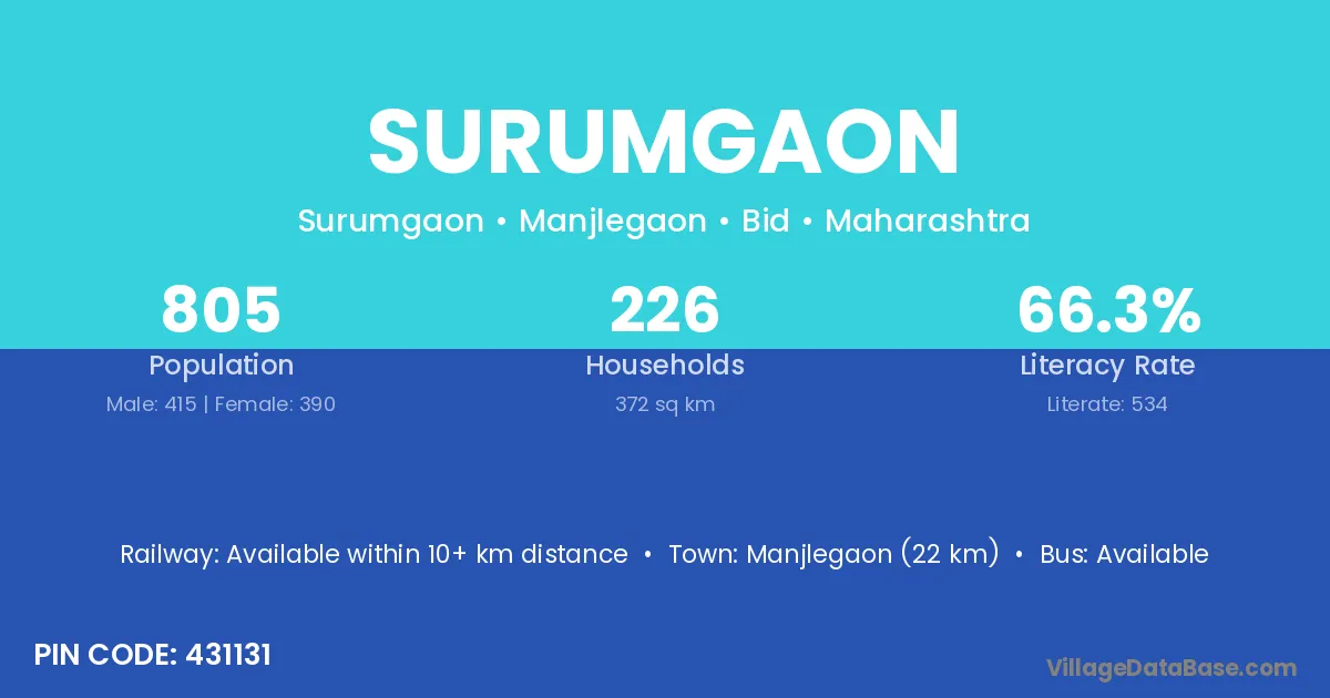 According to Census 2011 information, the village code of Surumgaon village is 431507.