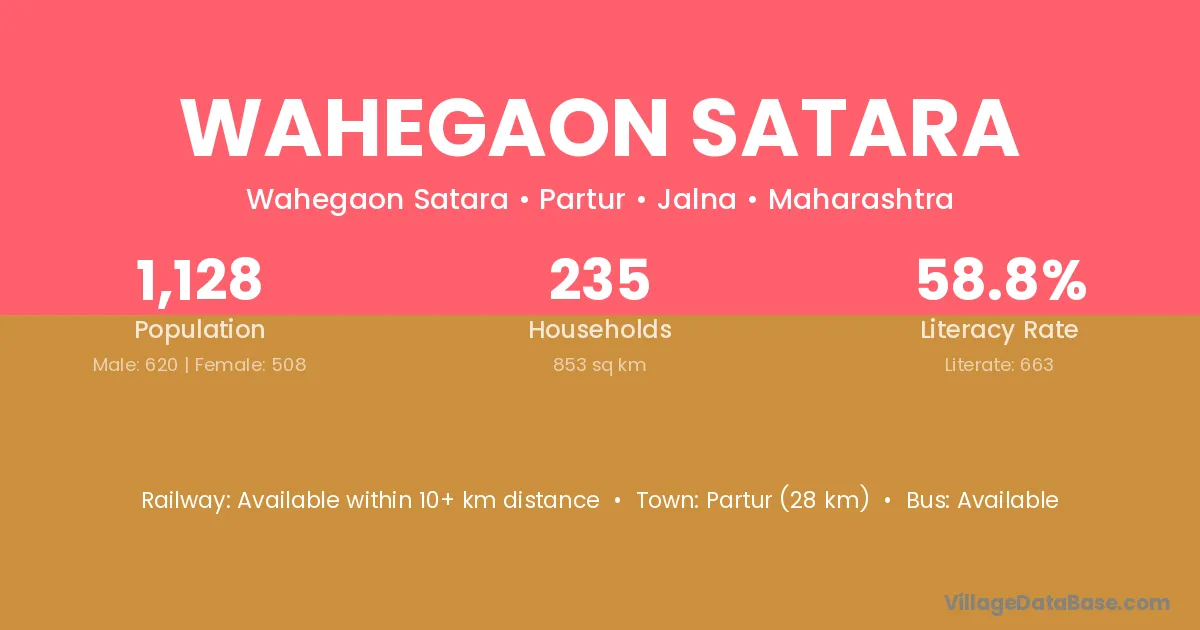 Partur (28 km) is the nearest town to Wahegaon Satara village for major economic activities and is located approximately 28 km away.