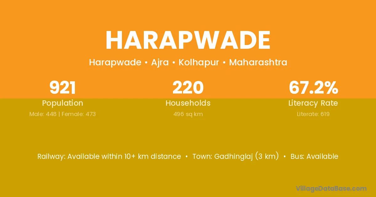 Harapwade village has a total population of 921 people, of which 448 are males and 473 are females.