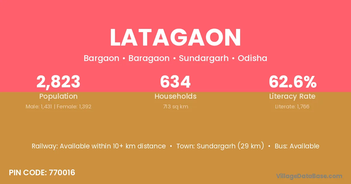 The literacy rate of Latagaon village is 62.38%. Male literacy stands at 70.80% and female literacy at 55.06%.