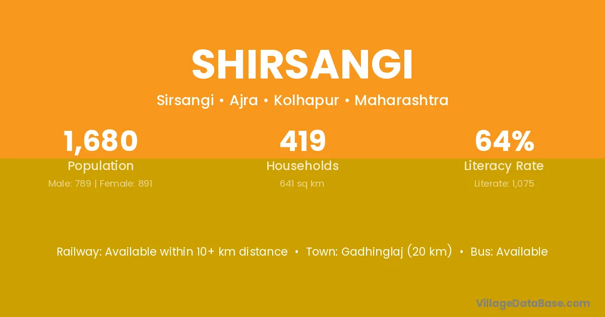 Shirsangi village has a total population of 1,680 people, of which 789 are males and 891 are females.