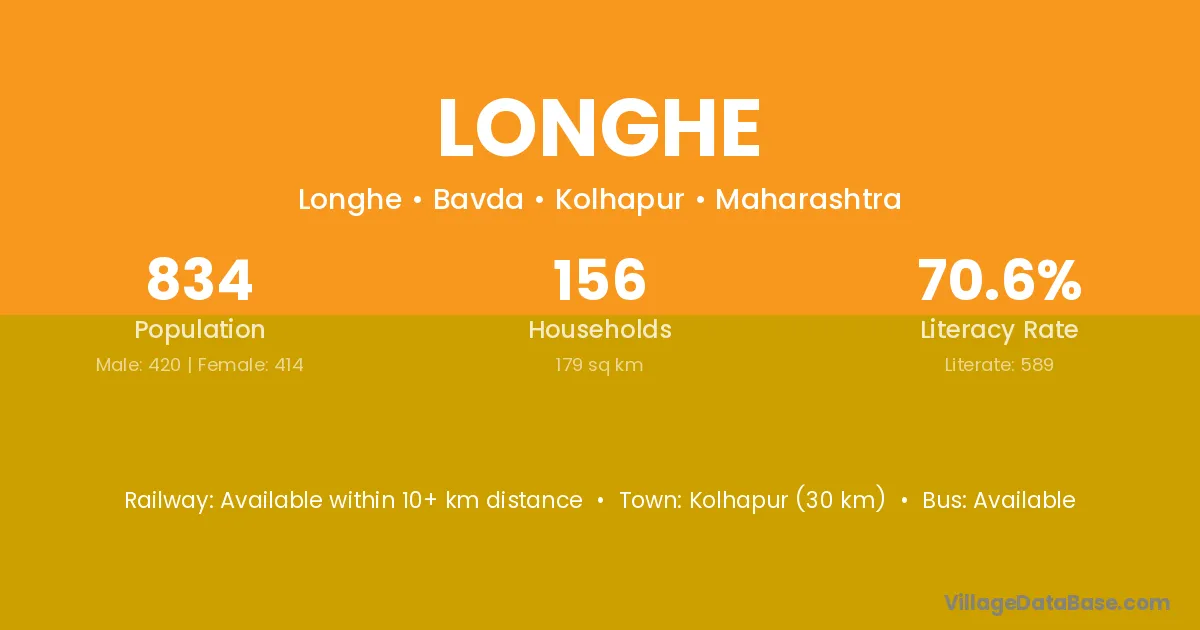 Kolhapur (30 km) is the nearest town to Longhe village for major economic activities and is located approximately 30 km away.