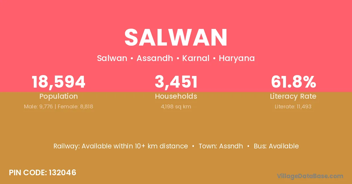 The literacy rate of Salwan village is 70.56%. Male literacy stands at 77.14% and female literacy at 63.04%.