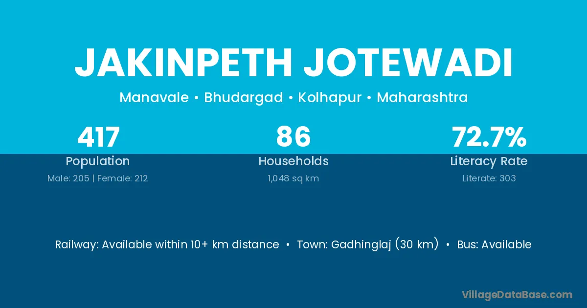 Jakinpeth Jotewadi village has a total population of 417 people, of which 205 are males and 212 are females.