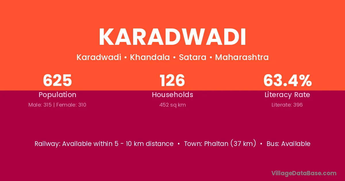 Karadwadi village has a total population of 1,227 people, of which 597 are males and 630 are females.