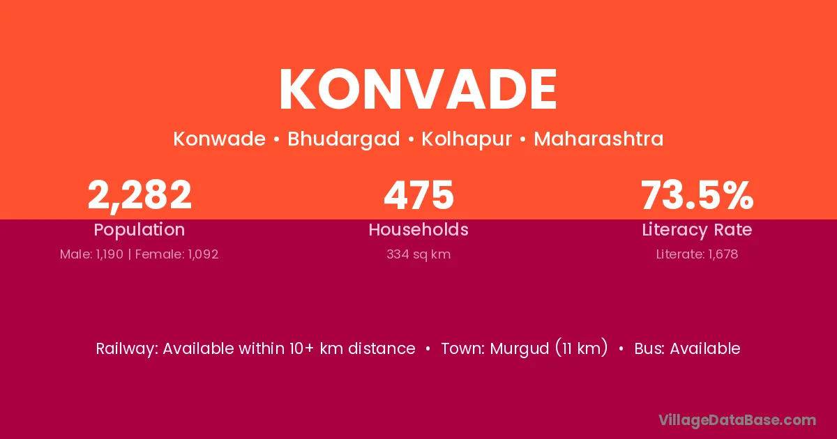Murgud (11 km) is the nearest town to Konvade village for major economic activities and is located approximately 11 km away.