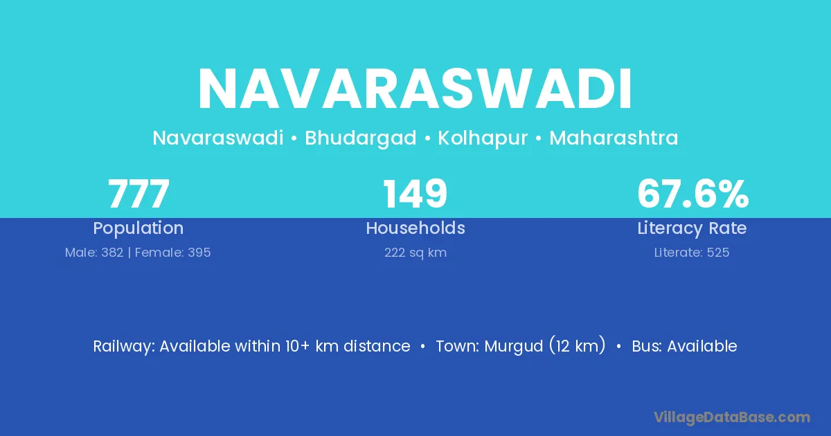 Murgud (12 km) is the nearest town to Navaraswadi village for major economic activities and is located approximately 12 km away.