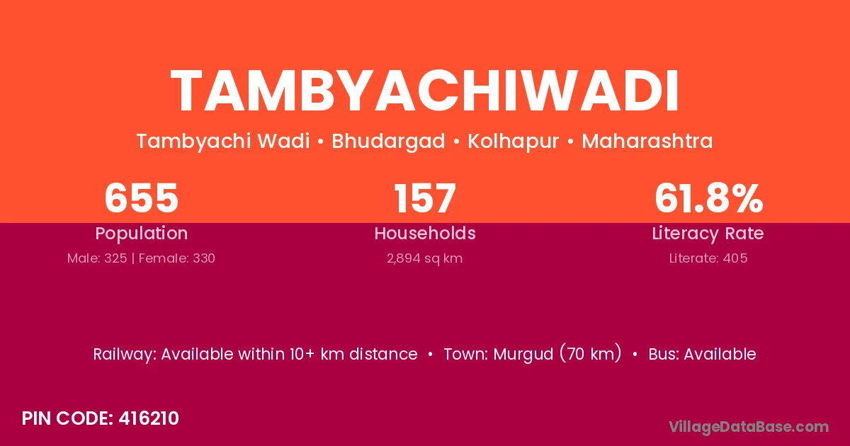 Tambyachiwadi village has a total population of 655 people, of which 325 are males and 330 are females.