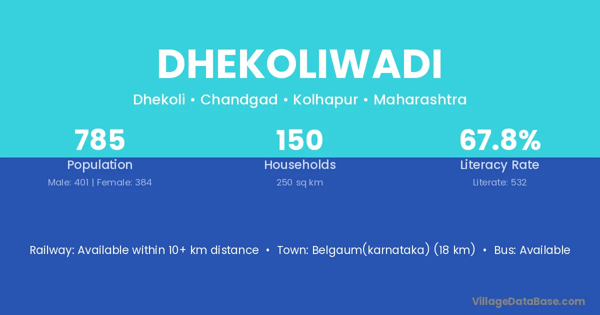 Dhekoliwadi village has a total population of 785 people, of which 401 are males and 384 are females.
