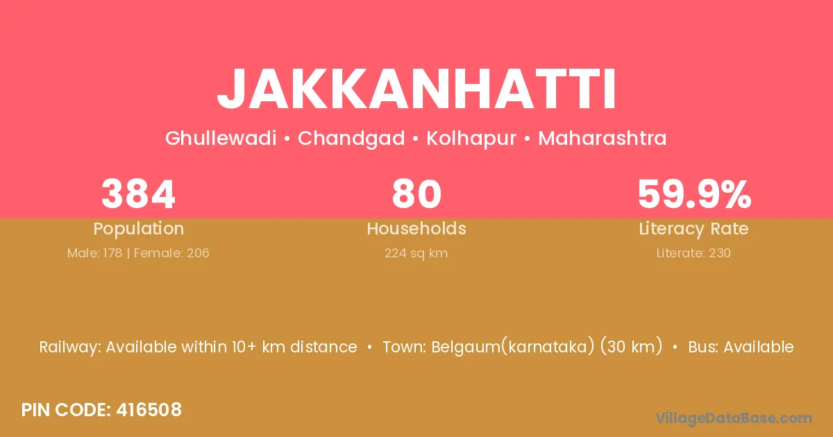 Belgaum(karnataka) (30 km) is the nearest town to Jakkanhatti village for major economic activities and is located approximately 30 km away.