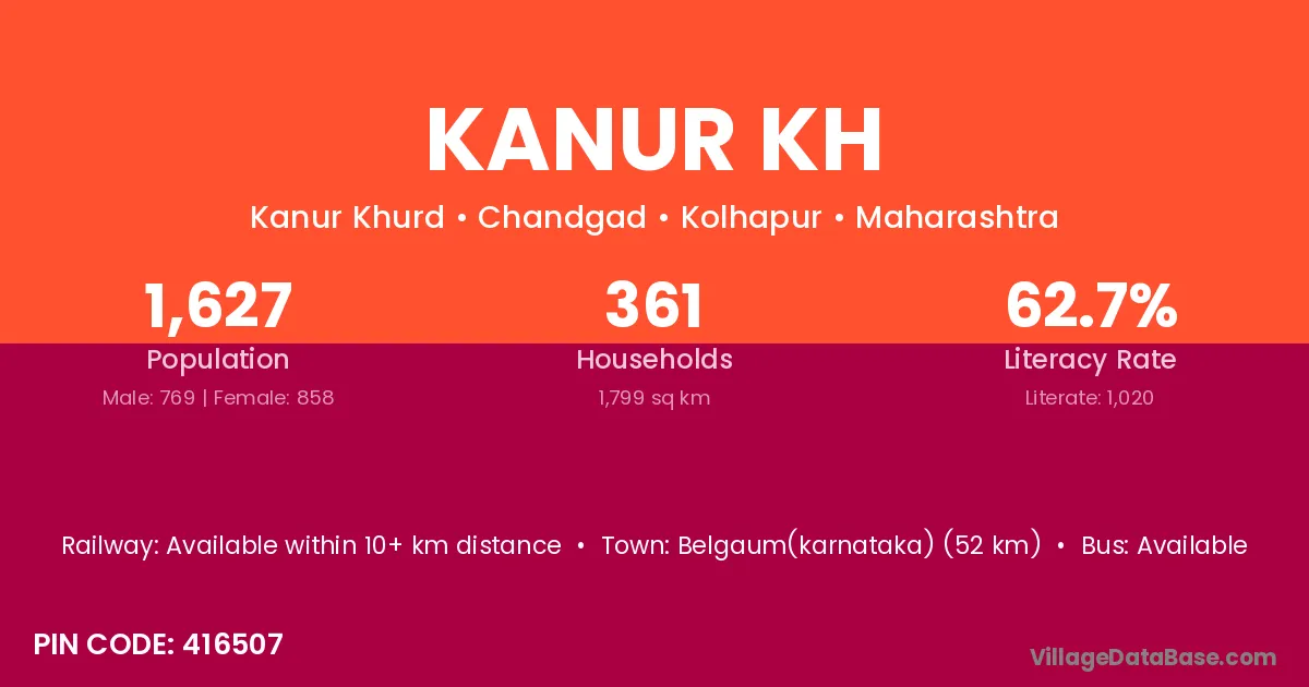 Belgaum(karnataka) (52 km) is the nearest town to Kanur Kh village for major economic activities and is located approximately 52 km away.