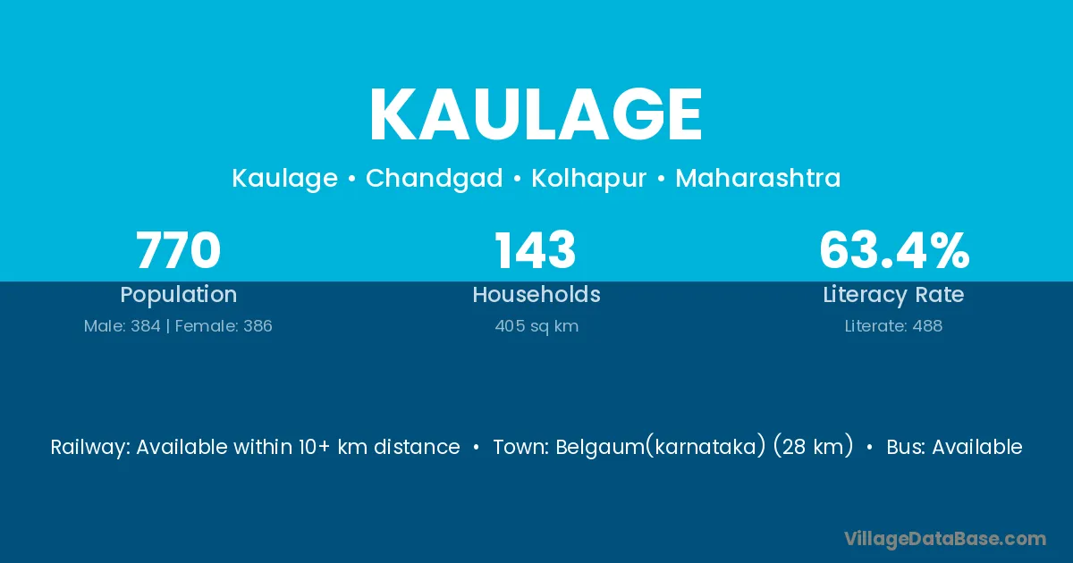 Kaulage village has a total population of 770 people, of which 384 are males and 386 are females.
