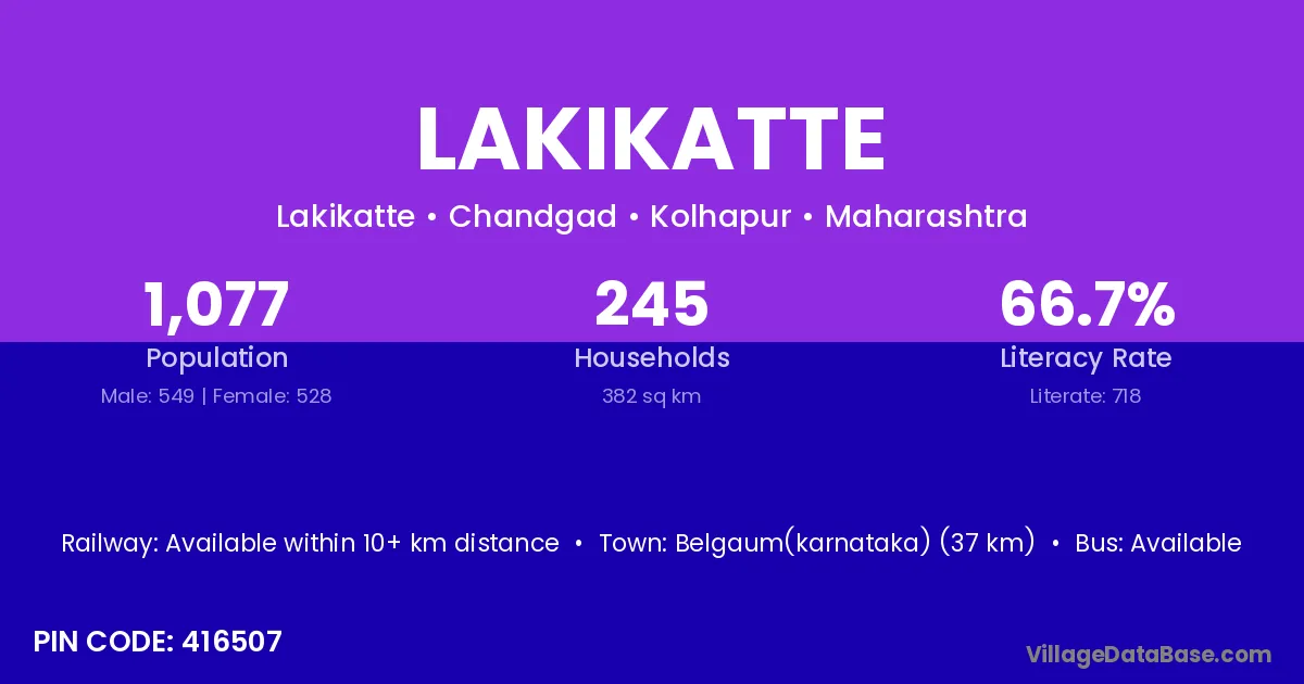 According to Census 2011 information, the village code of Lakikatte village is 416507.