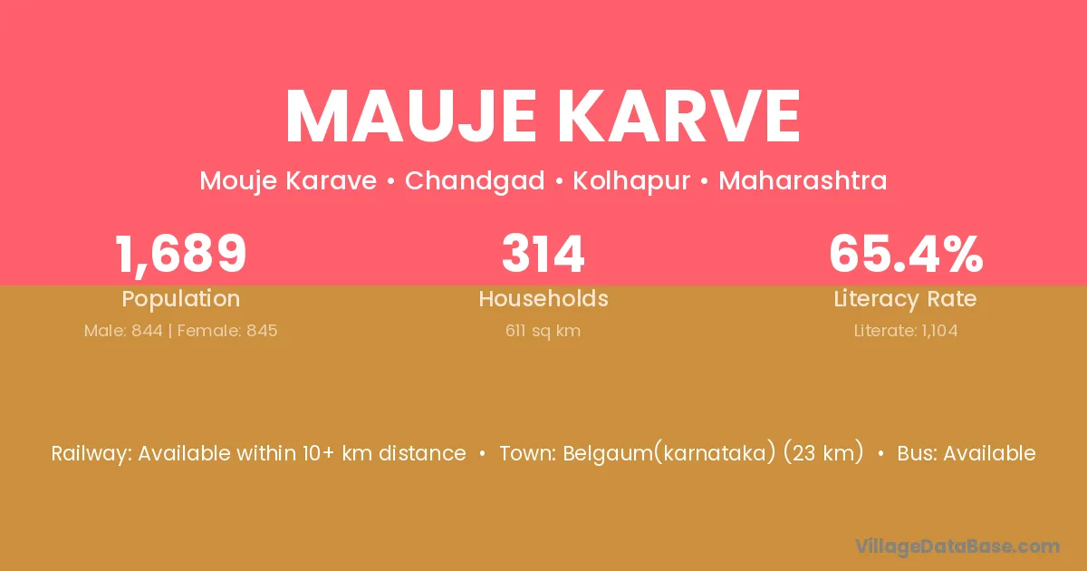 Mauje Karve village has a total population of 1,689 people, of which 844 are males and 845 are females.