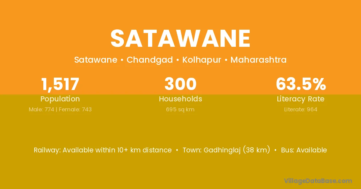 Gadhinglaj (38 km) is the nearest town to Satawane village for major economic activities and is located approximately 38 km away.