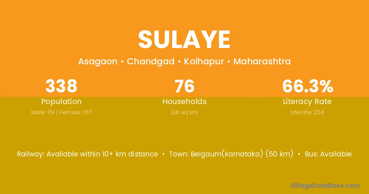 Belgaum(karnataka) (50 km) is the nearest town to Sulaye village for major economic activities and is located approximately 50 km away.