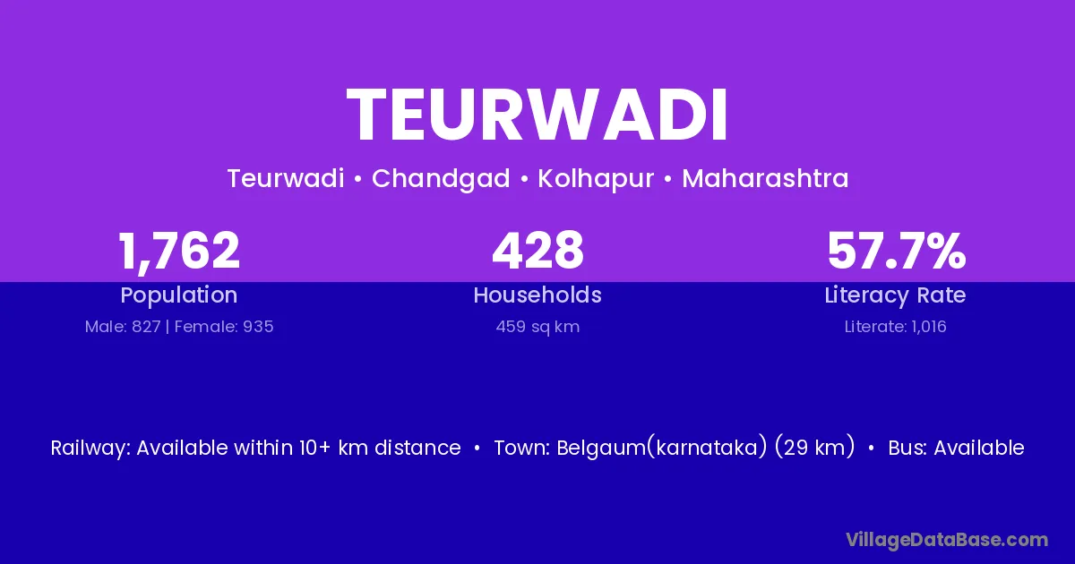 Belgaum(karnataka) (29 km) is the nearest town to Teurwadi village for major economic activities and is located approximately 29 km away.