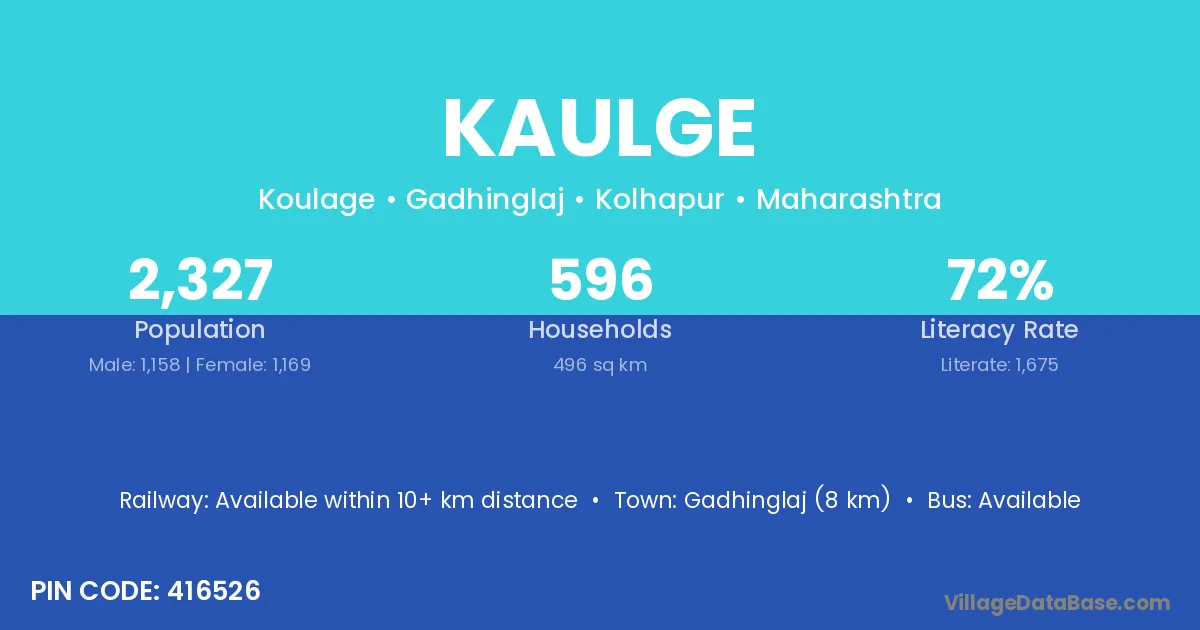 Gadhinglaj (8 km) is the nearest town to Kaulge village for major economic activities and is located approximately 8 km away.