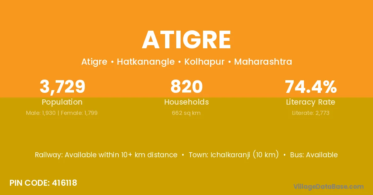 Ichalkaranji (10 km) is the nearest town to Atigre village for major economic activities and is located approximately 10 km away.