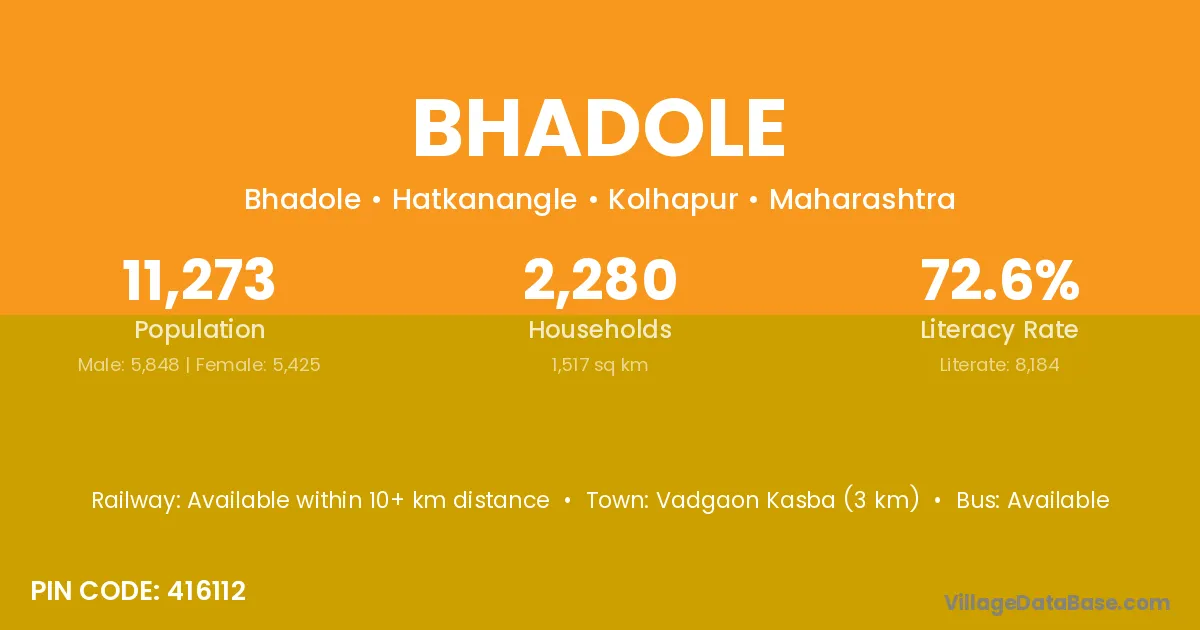 Vadgaon Kasba (3 km) is the nearest town to Bhadole village for major economic activities and is located approximately 3 km away.