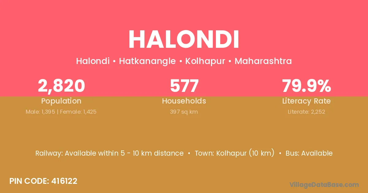 Kolhapur (10 km) is the nearest town to Halondi village for major economic activities and is located approximately 10 km away.