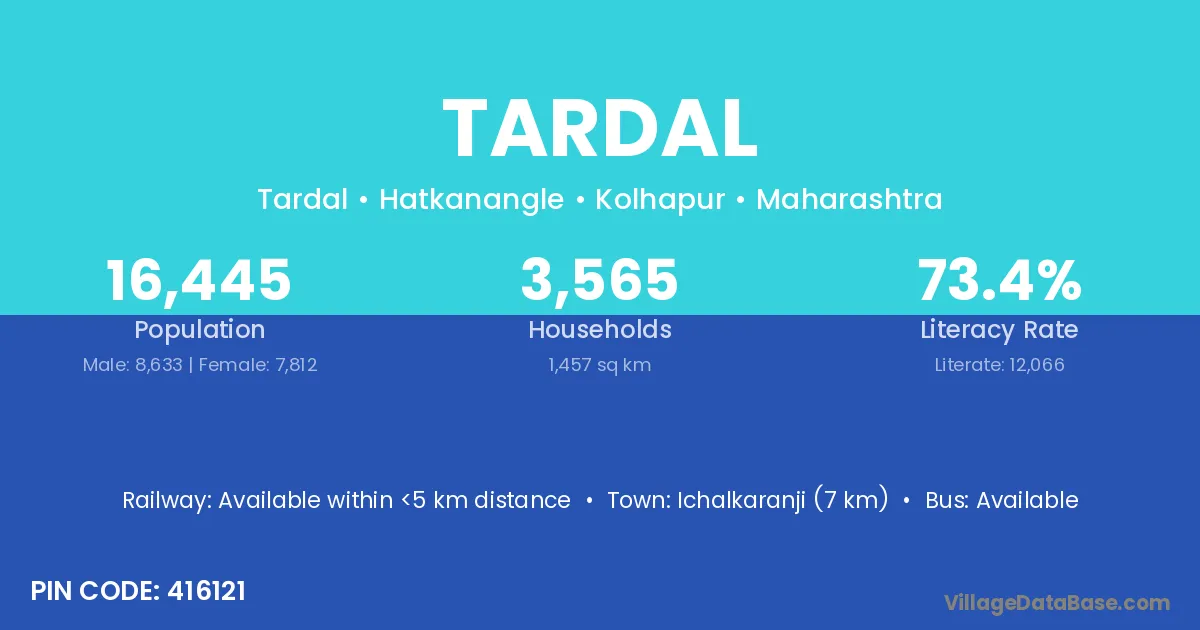 Ichalkaranji (7 km) is the nearest town to Tardal village for major economic activities and is located approximately 7 km away.