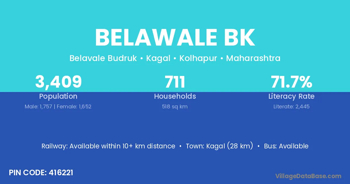 Kagal (28 km) is the nearest town to Belawale Bk village for major economic activities and is located approximately 28 km away.