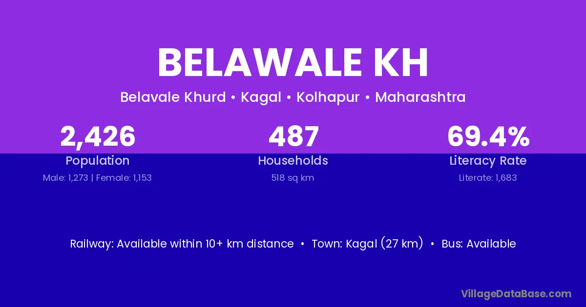 Kagal (27 km) is the nearest town to Belawale Kh village for major economic activities and is located approximately 27 km away.