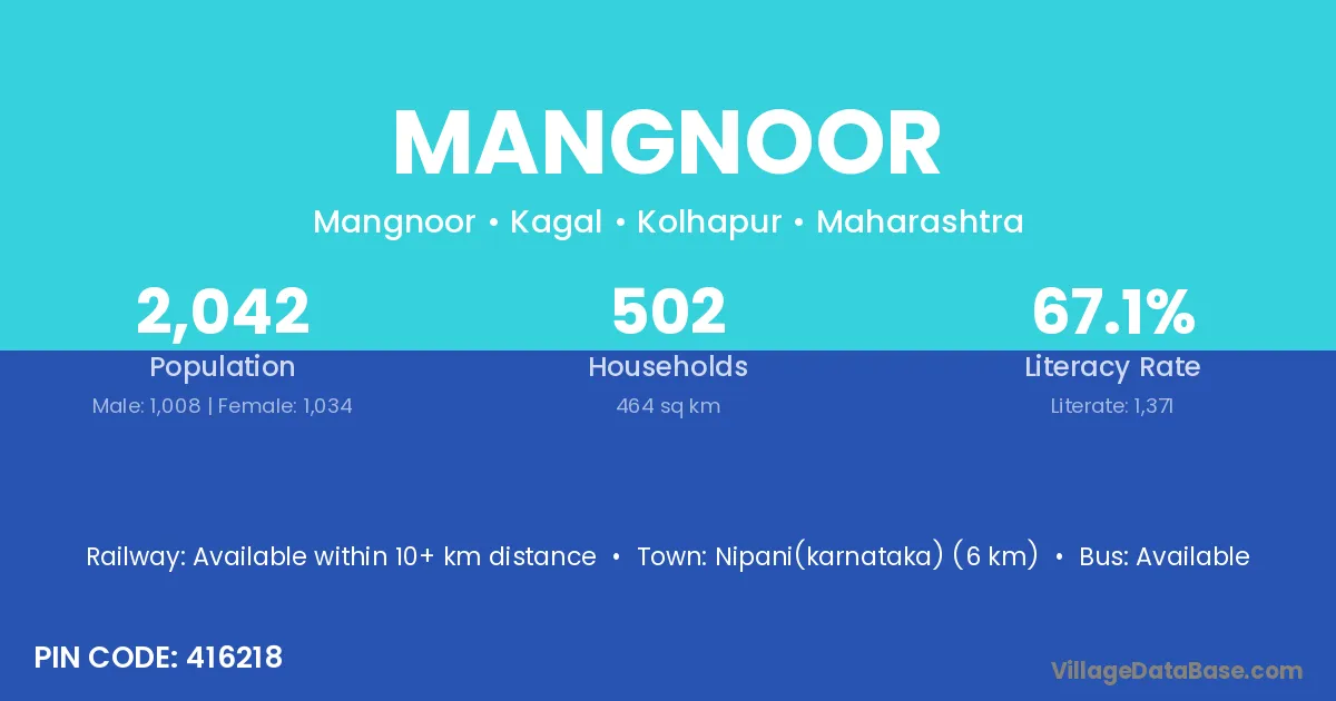 According to Census 2011 information, the village code of Mangnoor village is 416218.