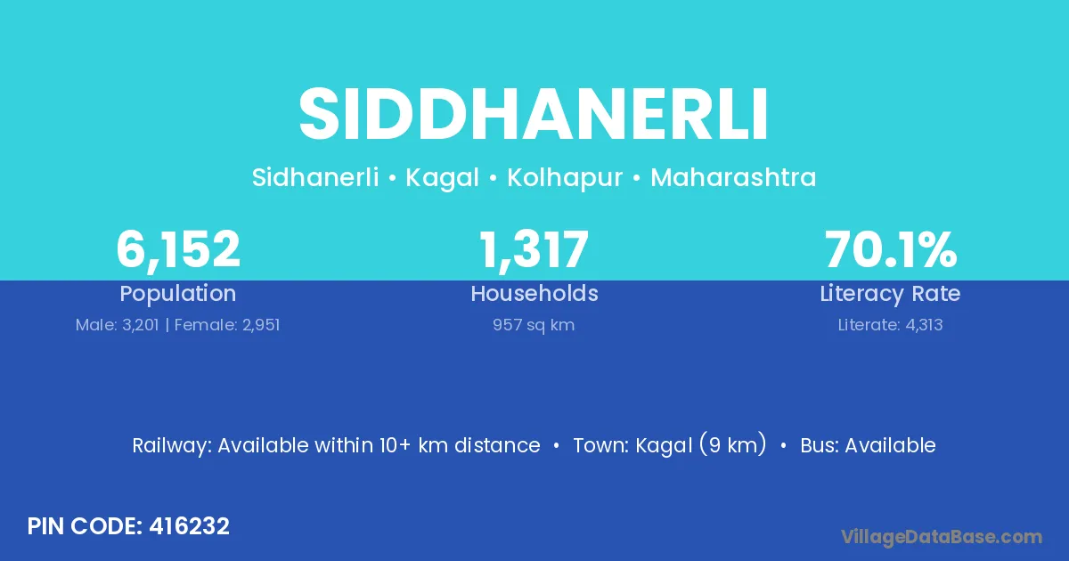 Kagal (9 km) is the nearest town to Siddhanerli village for major economic activities and is located approximately 9 km away.