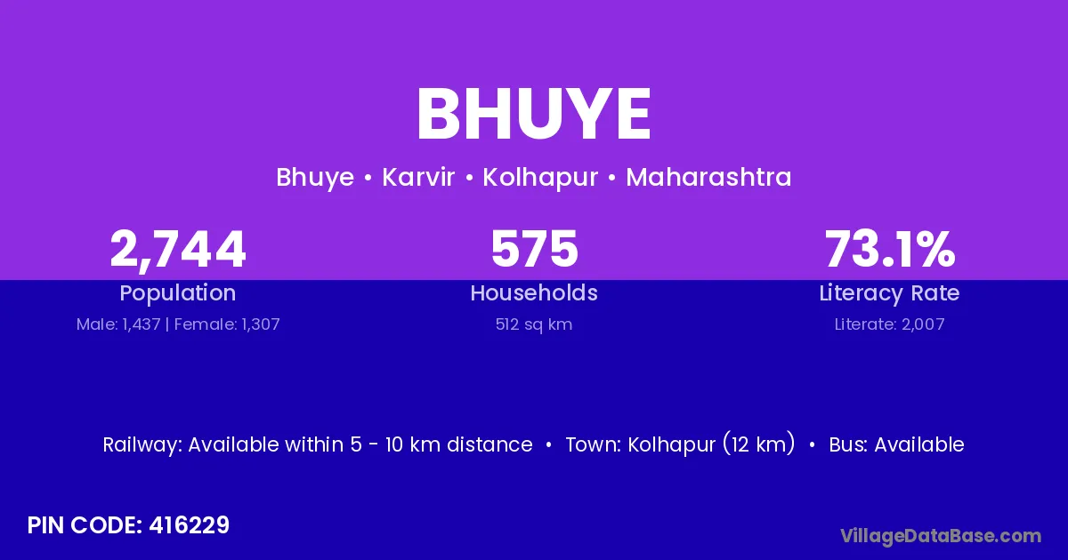 Kolhapur (12 km) is the nearest town to Bhuye village for major economic activities and is located approximately 12 km away.