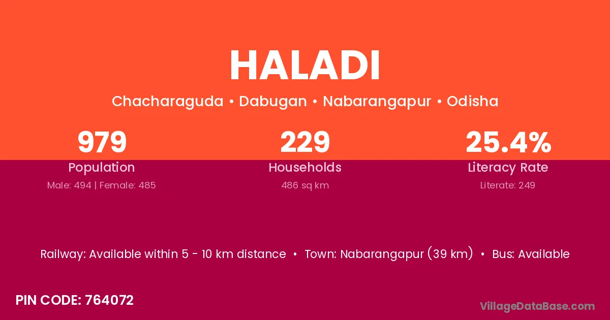 According to Census 2011 information, the village code of Haladi village is 416001.