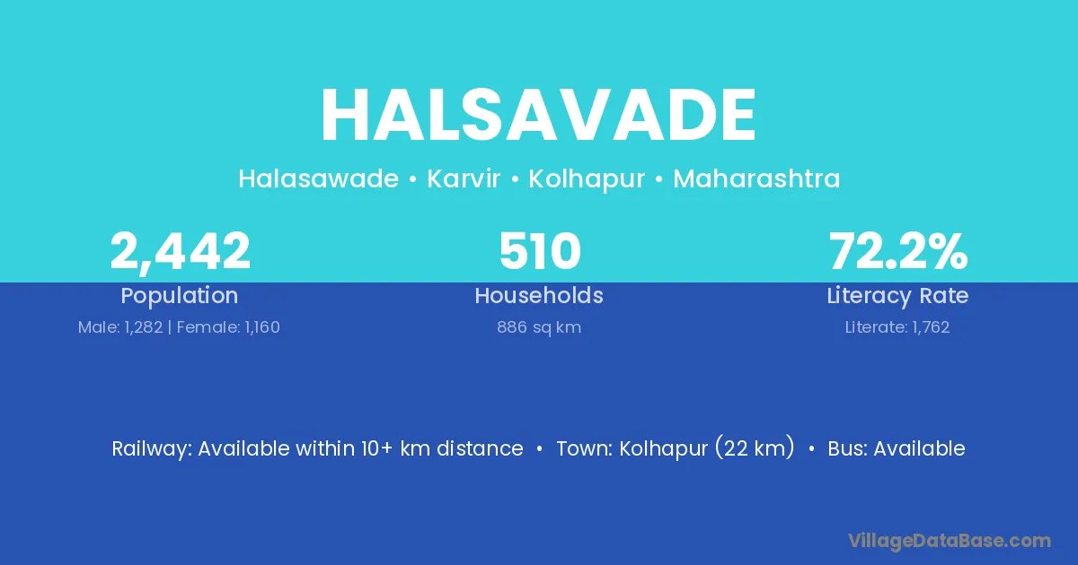 Kolhapur (22 km) is the nearest town to Halsavade village for major economic activities and is located approximately 22 km away.
